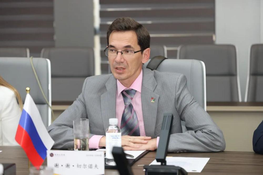 Before the symposium, the two schools jointly held a "2+2" joint training student meeting. Chernov Sergei Sergeyevich had a cordial interaction with our school students. Comprehensively introduce the situation of Novosibirsk State Technical University from campus environment, teaching facilities, faculty, to student life, etc., to help students establish intuitive cognition. In the interactive session, the teachers of the school patiently answered questions one by one regarding students' concerns about curriculum design, study abroad adaptation, employment development, etc., and established clear communication channels for students.