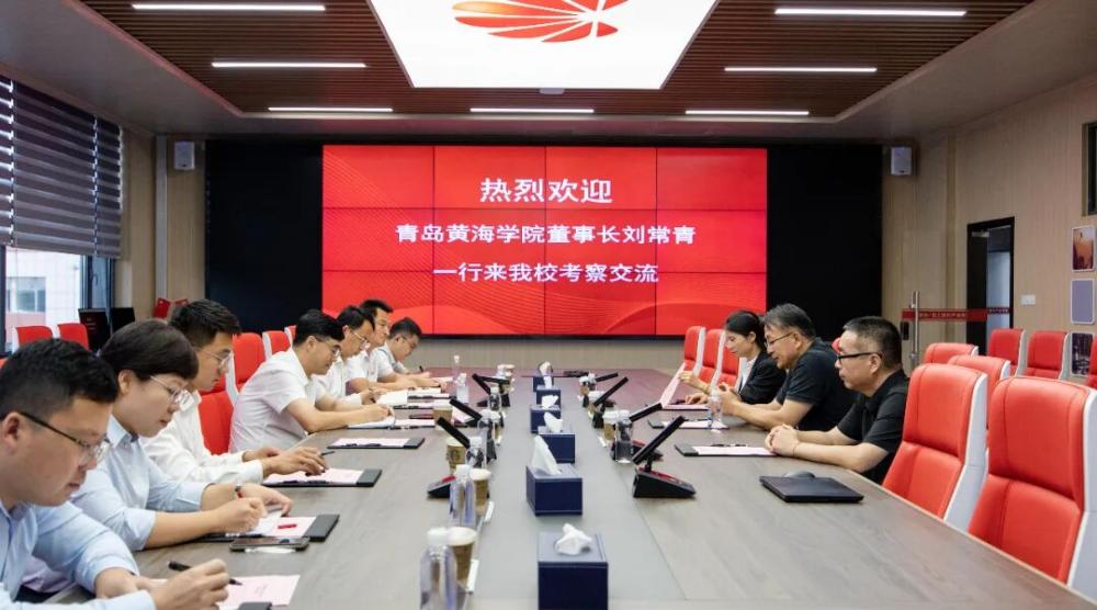 On September 29, Liu Changqing, Chairman of Qingdao Huanghai University, and Meng Guangdong, Deputy Party Committee Secretary, led a delegation to visit our university for an inspection and exchange. The two parties engaged in in-depth discussions and exchanges on topics such as industry-education integration in the context of digital transformation, the construction of industry colleges, the enhancement of faculty capabilities, and the application of intelligent education platforms. Li Kangju, President of our university, attended the symposium and accompanied the delegation during the visit.