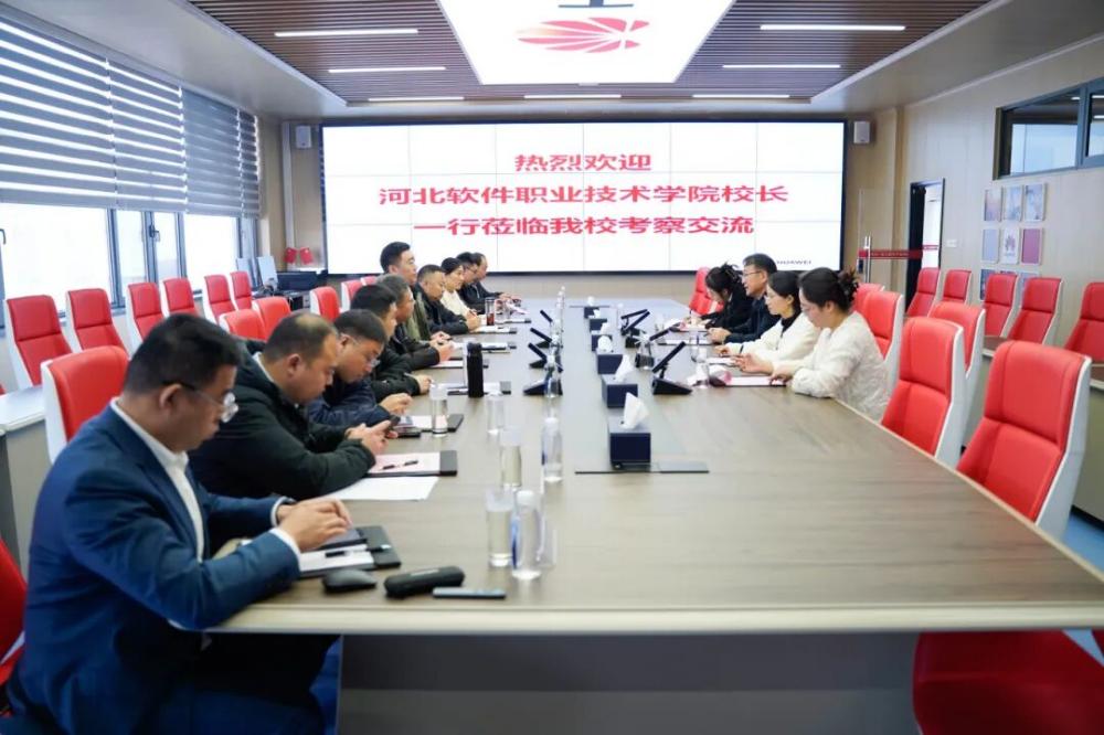 On October 22nd, Qiao Zhe, the president of Hebei Software Vocational and Technical College, and his delegation visited SIT for inspection and exchange. Both sides conducted in-depth discussions on topics such as the construction of modern industrial colleges, collaborative education between schools and enterprises, and education empowered by artificial intelligence. SIT principal Li Kangju attended the symposium and accompanied the visit.