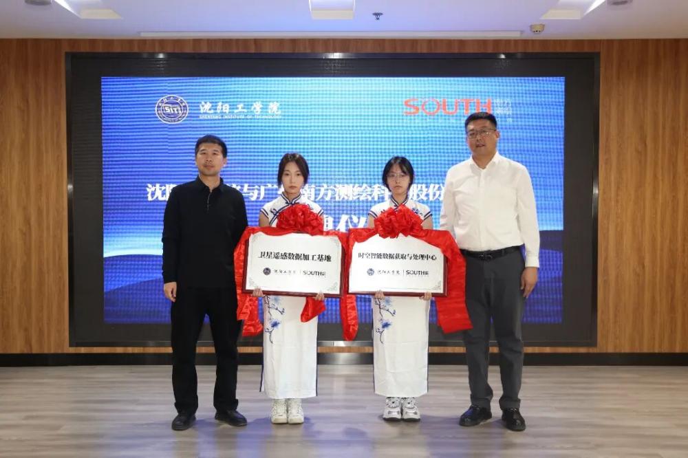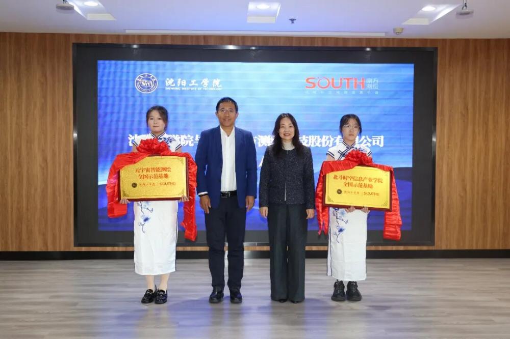 On November 10, Shenyang Institute of Technology and Guangzhou Southern Surveying and Mapping Technology Co., Ltd. held a signing and unveiling ceremony. The two parties signed a comprehensive cooperation agreement and officially established the "National Demonstration Base for BeiDou Spatiotemporal Information Industry College" and the "National Demonstration Base for Metaverse Intelligent Surveying and Mapping." This marks a new phase in the integration of industry and education in the field of surveying and mapping geographic information. Attendees included Yang Guofan, Chairman of the Liaoning Provincial Society of Surveying and Mapping Geographic Information; Guo Baoyu, Vice President of Southern Surveying and Mapping Group; Ren Qingfeng, Director of the Education Division at Jiliao; Li Kangju, President of Shenyang Institute of Technology; and Yang Xiuying, Vice President of the university.