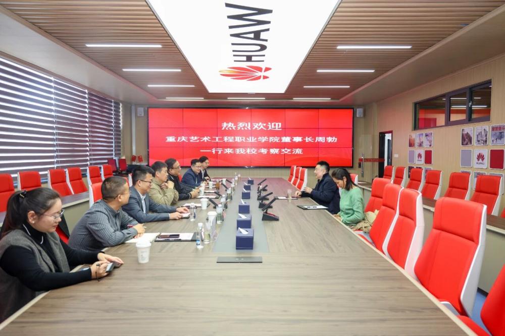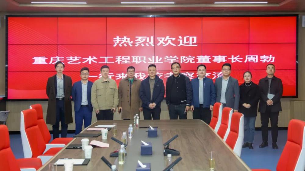 On November 14, Zhou Bo, Chairman of Chongqing Art Engineering Vocational College, led a delegation to our university for an inspection and exchange visit. The two sides held in-depth discussions on topics including institutional platform development, school-enterprise collaboration, and educational advancement, while also exploring potential future cooperation. Wang Zhaobao, Chairman of our university, participated in the symposium.