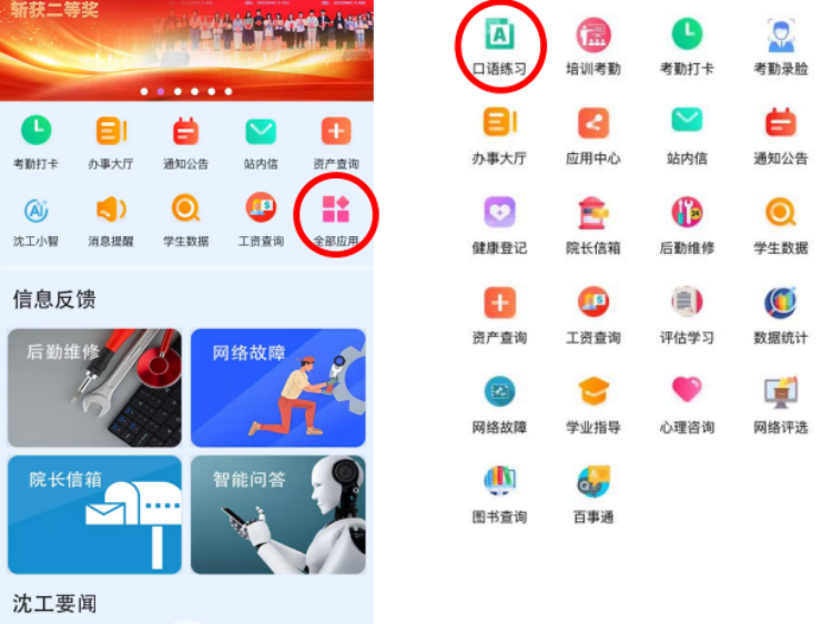 To advance digital transformation and empower teaching quality improvement with AI, our university is taking another major step! The "Oral English Practice" module has been officially launched on the Shenggong Zhixiao APP. Leveraging professional AI technology, it creates immersive oral practice scenarios for students, making English listening and speaking training efficient, convenient, and accessible anytime, anywhere.