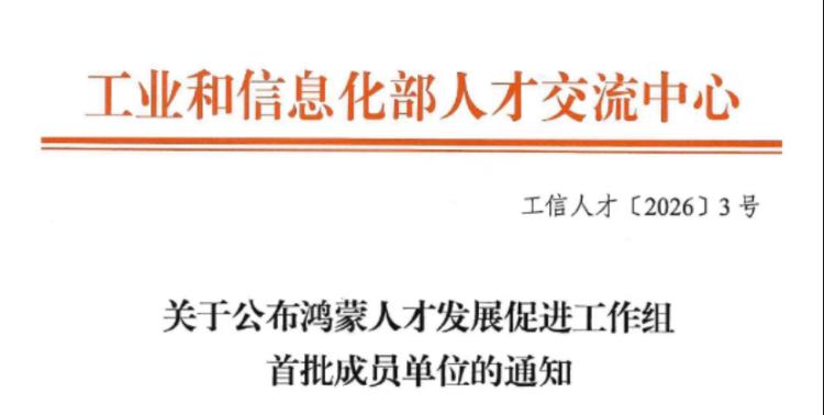Recently, the MIIT Talent Exchange Center issued the Notice on Announcing the First Batch of Members of the HarmonyOS Talent Development Promotion Working Group (MIIT Talent [2026] No. 3), in which our university was successfully selected. This achievement represents high recognition of our university’s work in industry-education integration, and marks important progress in serving the national strategy for innovative information technology application and cultivating professional talents for the HarmonyOS ecosystem.