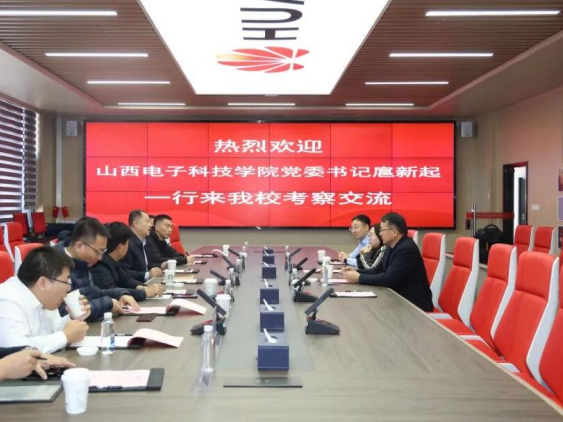 On December 11th, Hu Xinqi, Secretary of the Party Committee of Shanxi University of Electronic Science and Technology, and his delegation visited our school for inspection and exchange. Both parties had in-depth discussions on topics such as school enterprise cooperation, talent cultivation, and the construction of industrial colleges, and reached multiple consensuses in the establishment of micro majors, expansion of cooperative enterprise resources, and improvement of teacher capabilities. Li Kangju, Deputy Secretary of the Party Committee and President of our school, accompanied the inspection and participated in the symposium.