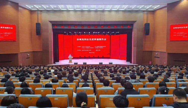 Spring tide surges to start a new journey, and the power of examples lights up the original aspiration. On March 9, a report meeting on the advanced deeds of Comrade Jin Chenglong was held in the library auditorium of our university. Representatives from various industries and fields, including organs of the Demonstration Zone Administrative Committee, sub-districts (townships, economic zones), grassroots communities (villages), resident units and enterprises, as well as teachers and students of Fushun Vocational and Technical College and our university gathered together to recall the short but glorious life of Comrade Jin Chenglong, feel the power of examples and accept spiritual baptism.