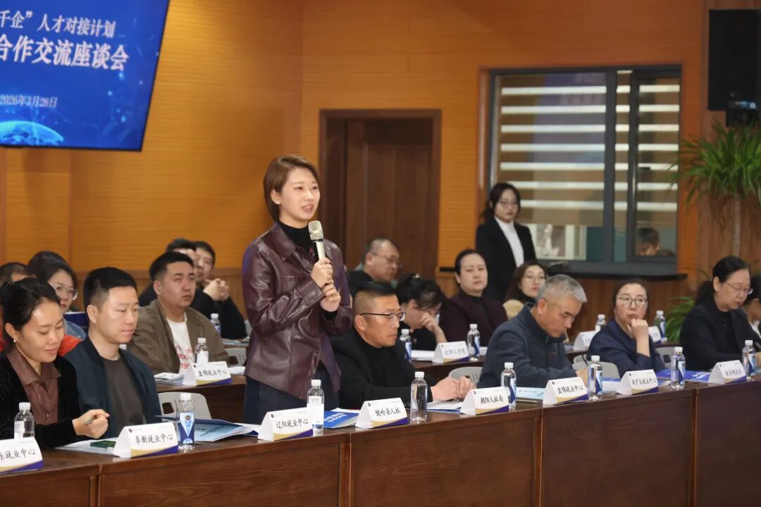 On March 26, the “ Hundred Schools, Thousand Enterprises” Talent Matching Program | Government-School-Enterprise Cooperation Symposium was held in Lecture Hall 204 of our university library. Attendees included Jin Ning, Deputy Director of the Party Building Department at Shenfu Innovation and Reform Demonstration Zone Management Committee; Hu Xiaomei, Party Secretary of our university; and Vice Presidents Xu Ying and Yang Xiuying. Representatives from human resources departments across 13 provincial cities, 29 industry leaders, and ecosystem enterprises of our Modern Industry College gathered to explore innovative pathways for industry-education integration and collaboratively advance talent development initiatives. The event was chaired by Hu Chenchen, Director of the Admissions and Employment Office.
